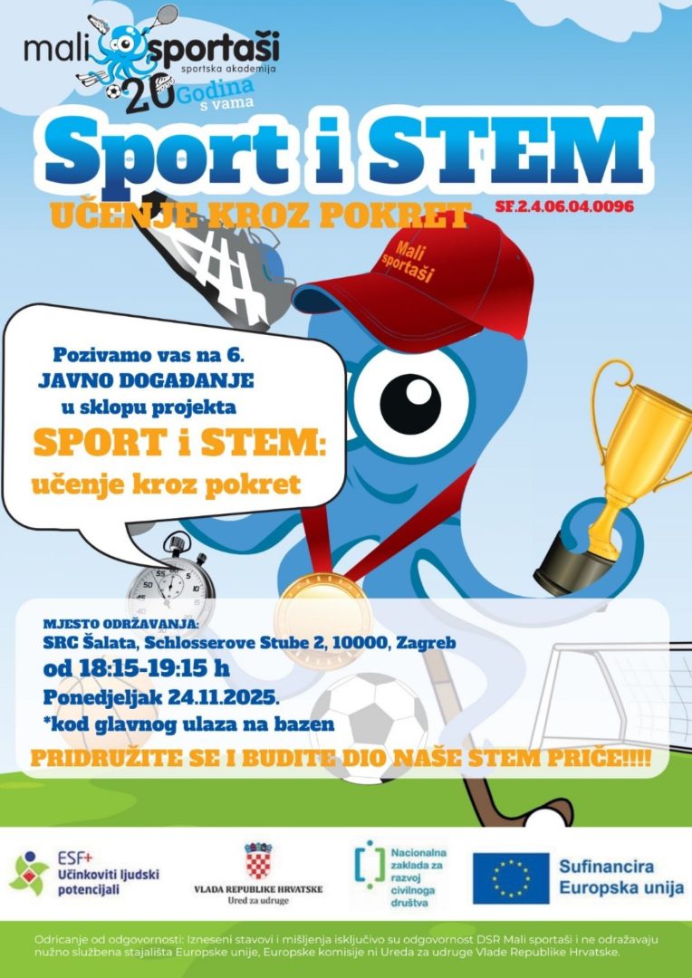 🎉 Pozivamo vas na 6. javno događanje u sklopu projekta SPORT i STEM: učenje kroz pokret!