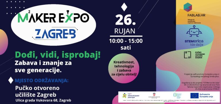 Maker Expo 2025, koji se održava 26. rujna 2025. od 10 do 15 sati u Pučkom otvorenom učilištu Zagreb, još jednom okuplja zajednicu inovatora, edukatora, tehnoloških entuzijasta i obitelji željnih istraživanja. To je sve u sklopu projekta “Jačanje kapaciteta ACC-a u STEM području – sportski način života i očuvanje okoliša” sufinanciran od Europske Unije.