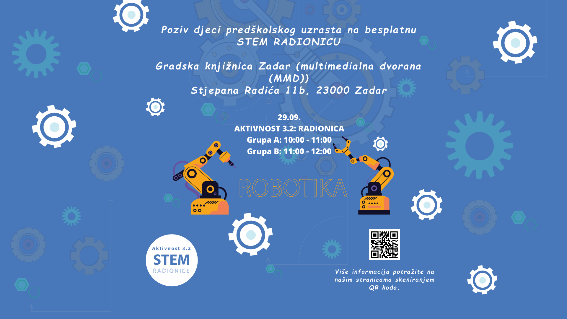 Radionice su namijenjene djeci predškolskog uzrasta. Djeca će imati priliku istražiti svijet znanosti i tehnologije kroz praktične aktivnosti, zabavne eksperimente, gradnju konstrukcija i logičke zadatke.