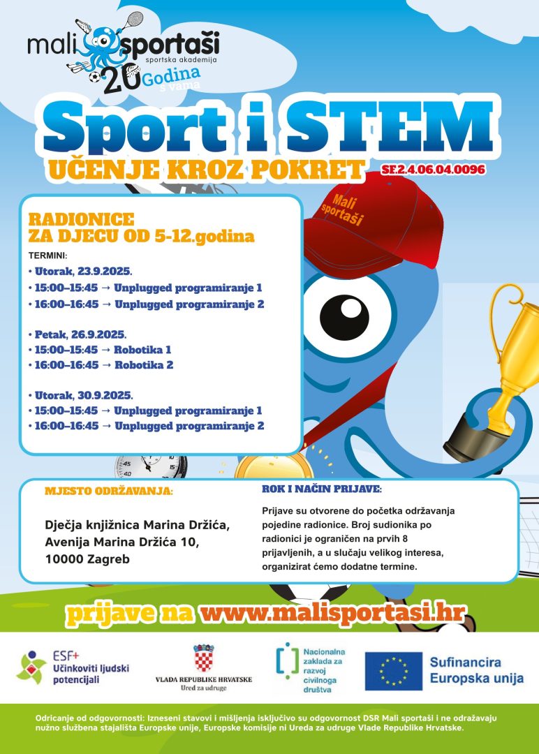 🎟️ Sudjelovanje je besplatno, a prijaviti se možete putem online obrasca na www.malisportasi.hr ili slanjem prijave na e-mail: stem.malisportasi@gmail.com