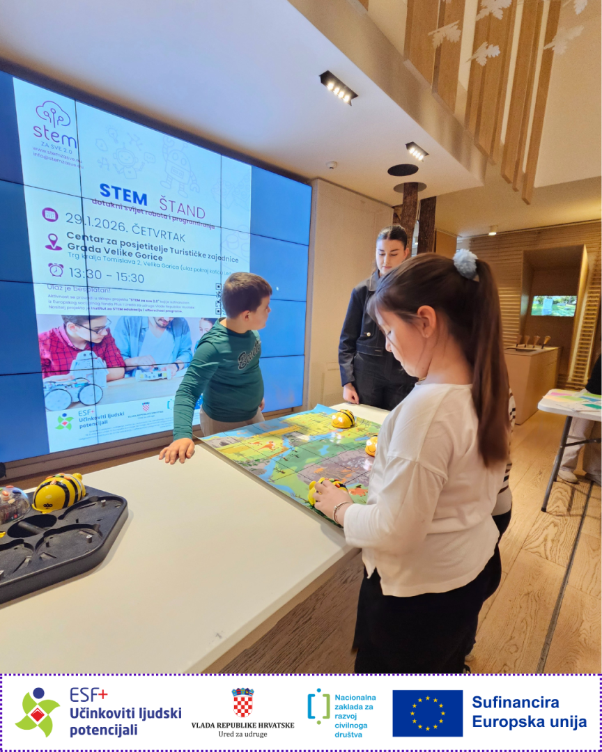 Projekt je sufinanciran iz Europskog socijalnog fonda plus unutar Poziva SF.2.4.06.04 “Jačanje kapaciteta organizacija civilnoga društva za promociju STEM-a”