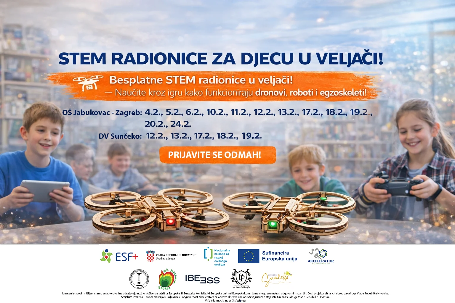 Veljača 2026.: robotika, dronovi i STEM izazovi – besplatne radionice u Zagrebu (OŠ Jabukovac + DV Sunčeko)